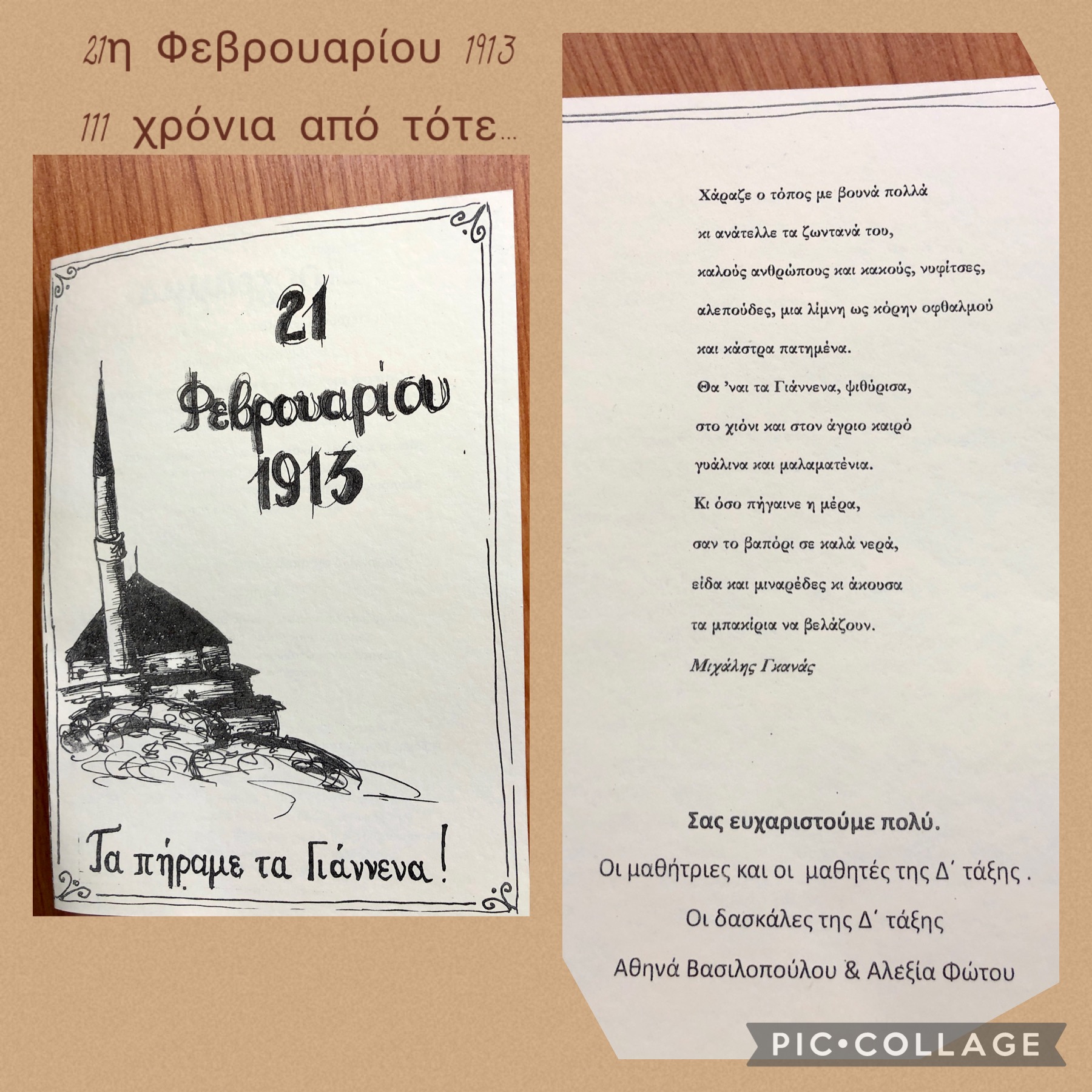 21η Φεβρουαρίου 1913, 111 χρόνια από τότε και σήμερα οι μαθητές/τριες της Δ´ Τάξης μαζί με τις δασκάλες τους μας ταξίδεψαν στον χρόνο με την ιστοριογραμμή της τοπικής μας ιστορίας!!! Χρόνια πολλά Γιάννενα…