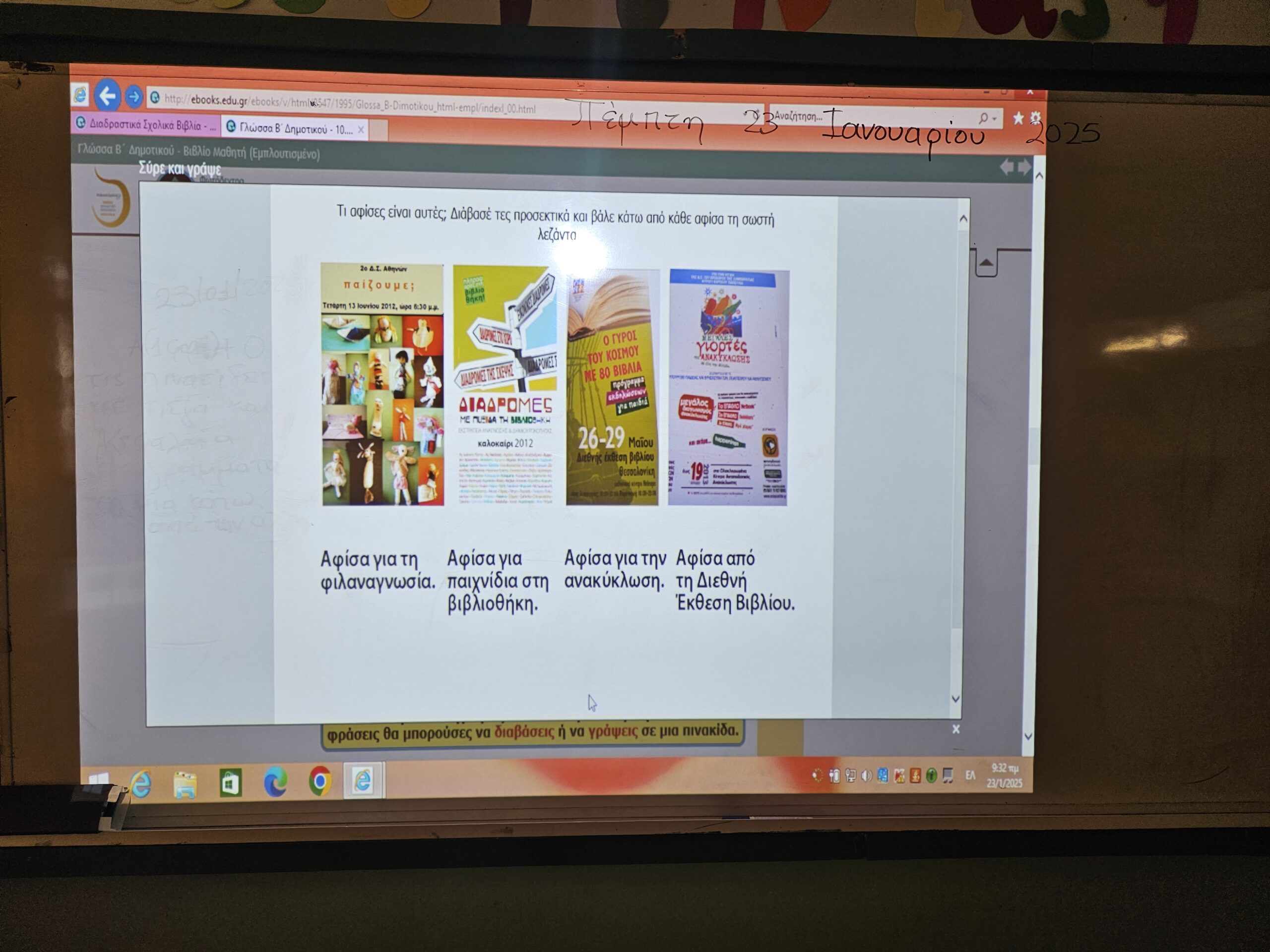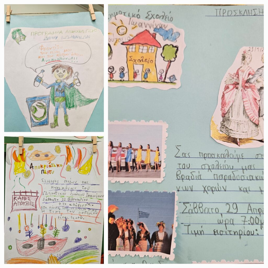 Έτσι, λοιπόν, οι μαθητές/τριες του Τμήματος Β2 χωρίστηκαν σε ομάδες και με μεγάλη χαρά έφτιαξαν τις δικές τους αφίσες, αφήνοντας ελεύθερη τη δημιουργική τους φαντασία και επιλέγοντας θέματα μετά από συζήτηση που έκαναν μεταξύ τους. Με τον τρόπο αυτόν συνειδητοποίησαν τα μέσα και τις τεχνικές που χρησιμοποιούνται για την απόδοση του νοήματος και την επίτευξη του επικοινωνιακού στόχου μέσα από την αναγνώριση του είδους του κειμένου (αφίσα), την ελεύθερη περιγραφή των αφισών και την εστίαση της προσοχής τους σε συγκεκριμένες πτυχές της οπτικής απεικόνισης.