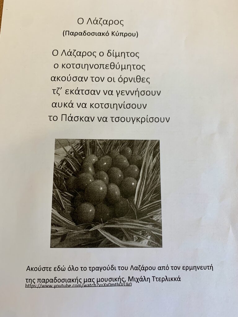 Σήμερα οι μαθητές/τριες της Γ´ Τάξης είπαν τα κάλαντα του Λαζάρου της Ελλάδας και της Κύπρου, με απόλυτη συνεργασία των εκπαιδευτικών του Σχολείου και της εκπαιδευτικού από την Κύπρο που φιλοξενούμε στα πλαίσια του Erasmus+. Η διοργάνωση στέφτηκε με απόλυτη επιτυχία και οι μαθητές ενθουσιασμένοι έλεγαν τον «Λάζαρο» στα ελληνικά και στα κυπριακά. Μπαίνοντας στο πνεύμα των ημερών…🐣🐇🪺🐣